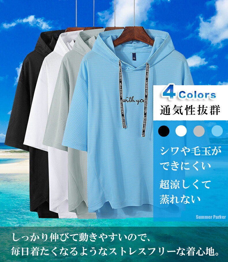 【接触冷感パーカー】 夏におすすめひんやり涼しいクールパーカーです。