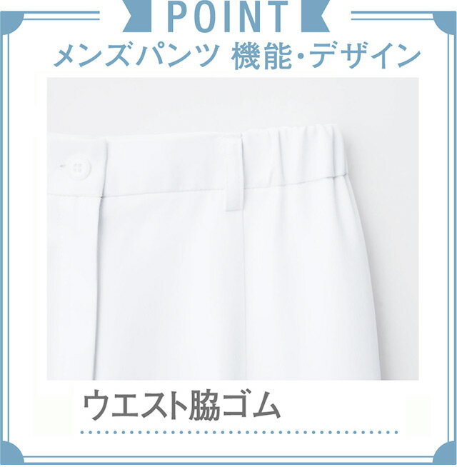 特徴 ノー タックですっきりしたデザインのメンズパンツ。